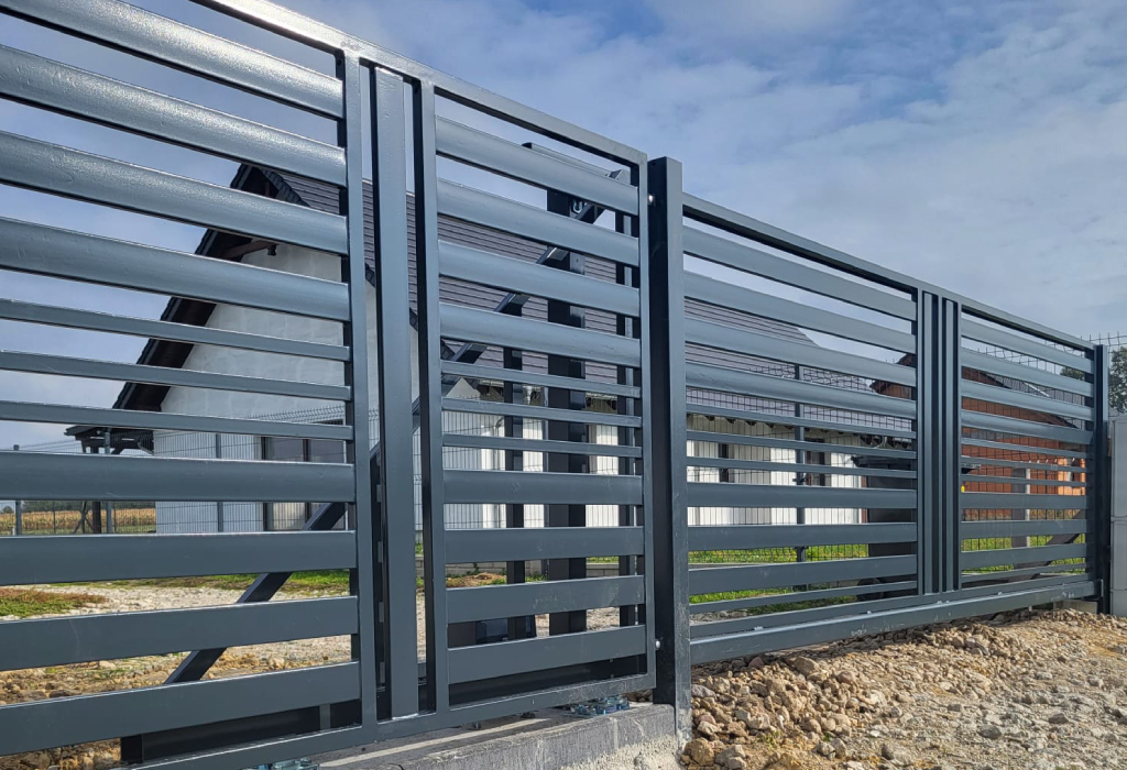 Wjazdowe, dwuskrzydłowe, przesuwne. Klasyczne i zdobione ornamentami lub wstawkami z drewna.